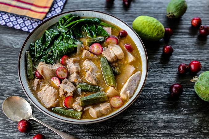 With its sour soup, sinigang is marked as Filipino comfort food. It rouses the senses because of the sourness and slight spice. Also, ingesting the long peppers can make the body sweat, which helps it to cool especially during a humid days. But there’s something different about this sinigang than we’re used to.